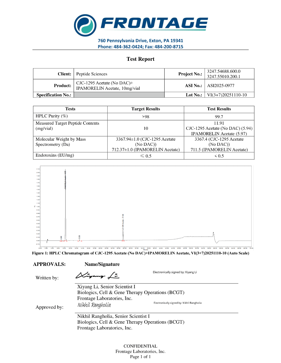 In preclinical and in vitro models, this peptide combination is frequently employed to examine GH pulsatility, receptor cross-talk, and the integrated regulation of hypothalamic–pituitary signaling networks. Quantifiable endpoints such as hormone secretion kinetics, receptor activation profiles, and intracellular signaling responses enable detailed characterization of peptide-mediated endocrine modulation under controlled laboratory conditions, without extrapolation to human therapeutic outcomes.